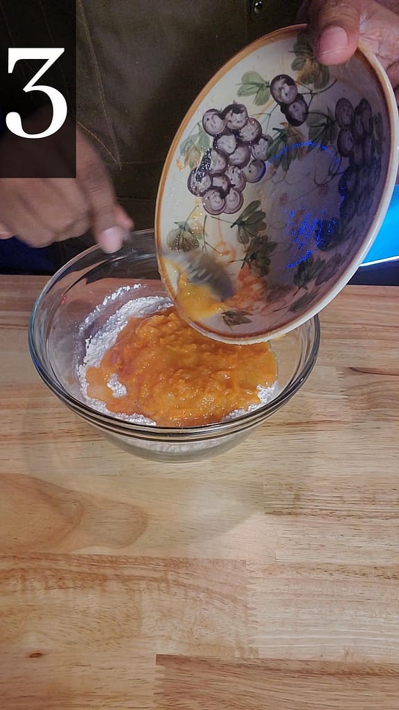 - In a small bowl, combine sugar, carrot, apple sauce, egg, and oil. Mix thoroughly.