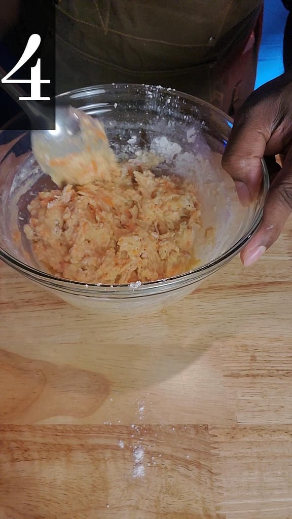 - In a small bowl, combine sugar, carrot, apple sauce, egg, and oil. Mix thoroughly.