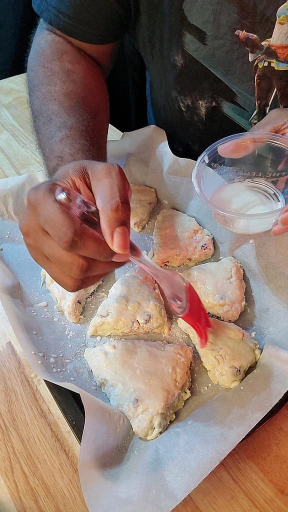Cream: Cream adds moisture and provides another source of fat. This adds to the overall texture of the scones by helping with tenderness.