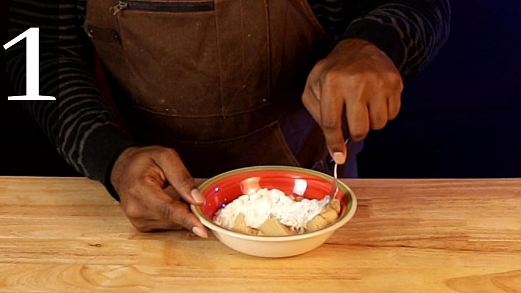 - Add the pumpkin puree, milk, chai tea powder, vanilla extract, butter extract, and food coloring (if using). Mix until well combined. Set aside.