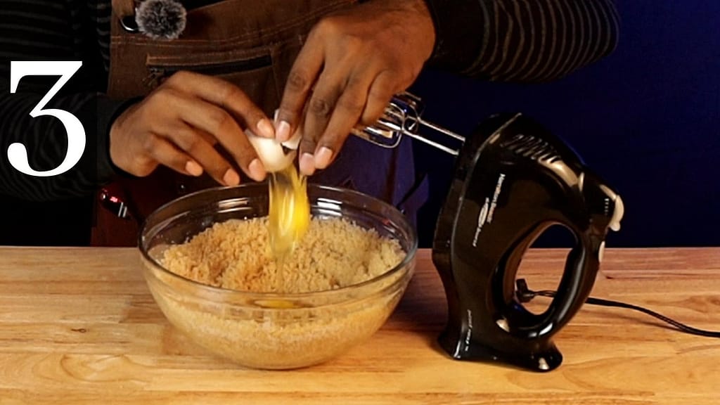 - Add 2 large eggs and mix until fluffy.