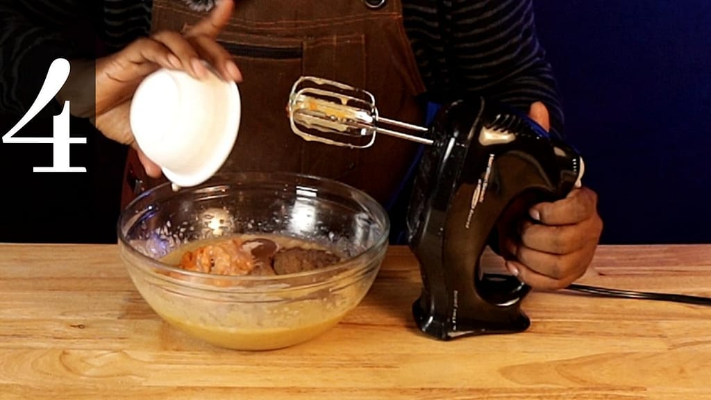 2. In a large bowl, combine the vegetable/coconut oil, sugar, and brown sugar using a hand/stand mixer. Mix until well until combined, about 30-40 seconds.