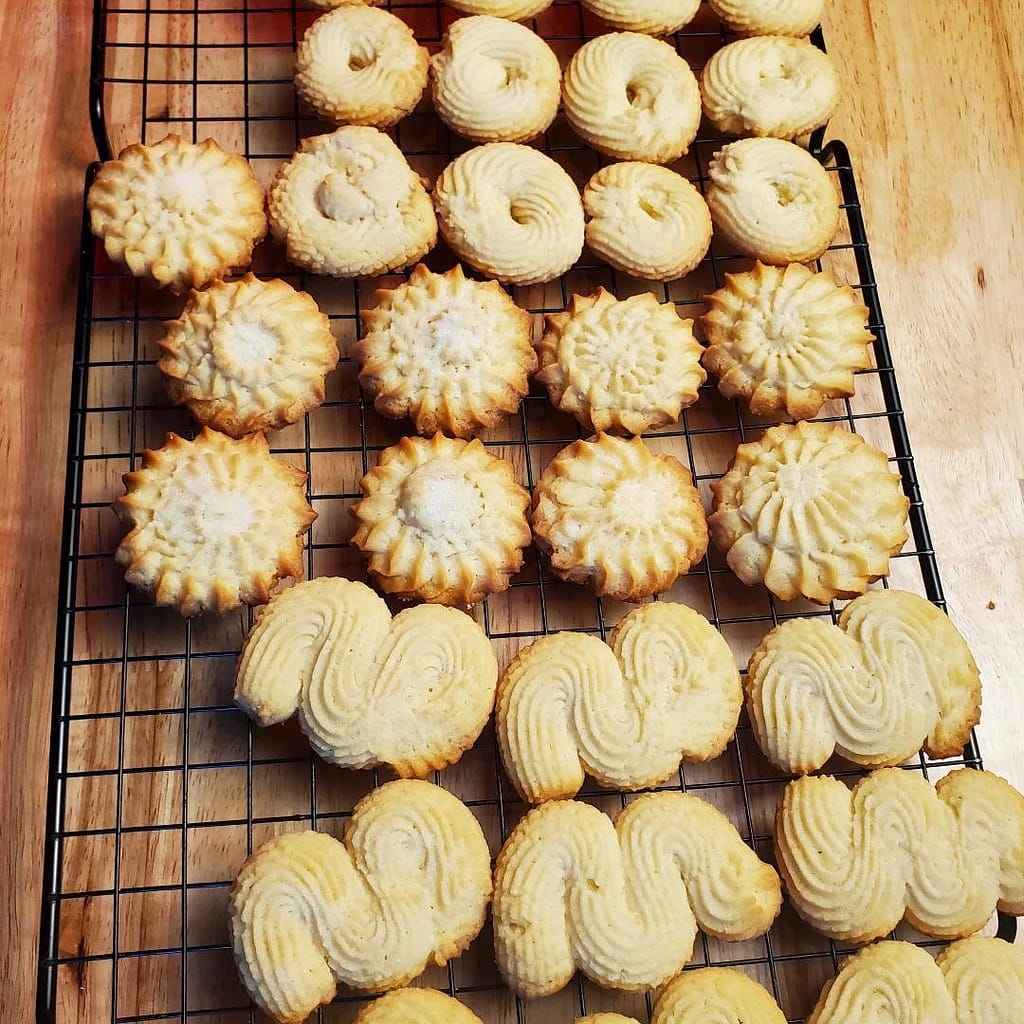 One of the best things about baking Danish butter cookies at home is the aroma that fills your kitchen. It’s warm, inviting, and almost impossible to resist. They make the perfect companion to a cup of coffee or tea, and they store beautifully — making them an ideal homemade edible gift during the holidays. I find homemade edible gifts are perfect when you don’t know exactly what to get someone. Everyone eats, so delicious Danish butter cookies are a great option.