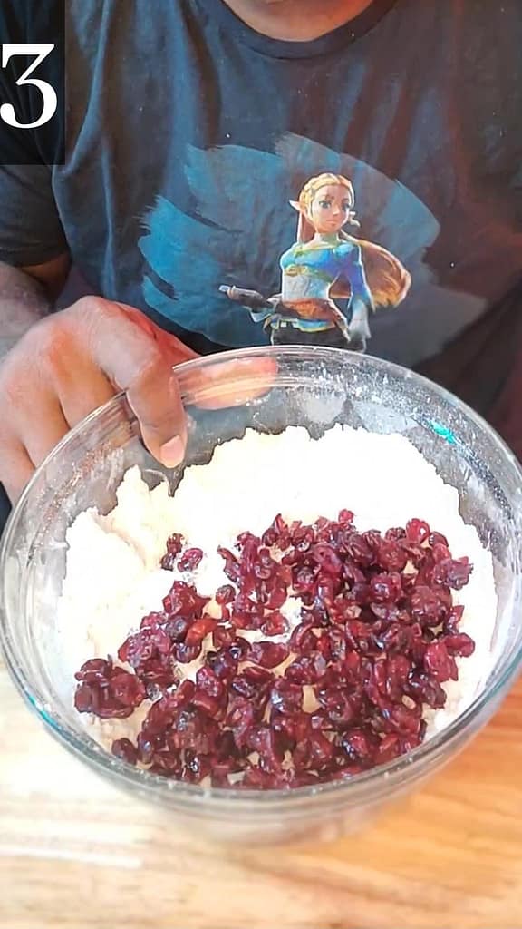 3. Add the dried cranberries.