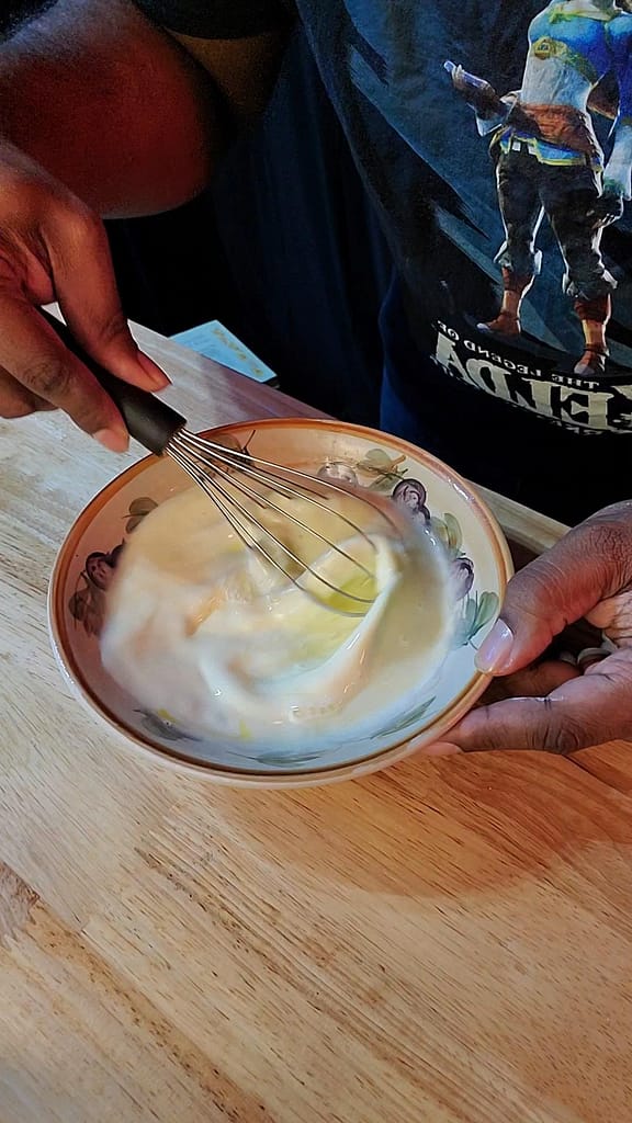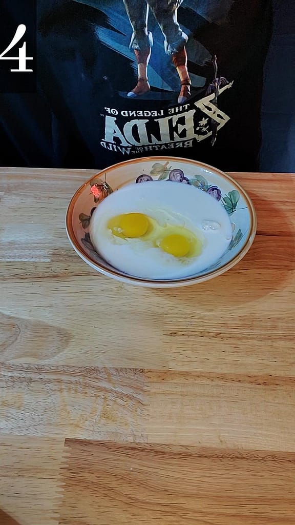 - In a medium sized bowl, add the cream and eggs. Beat until uniform.