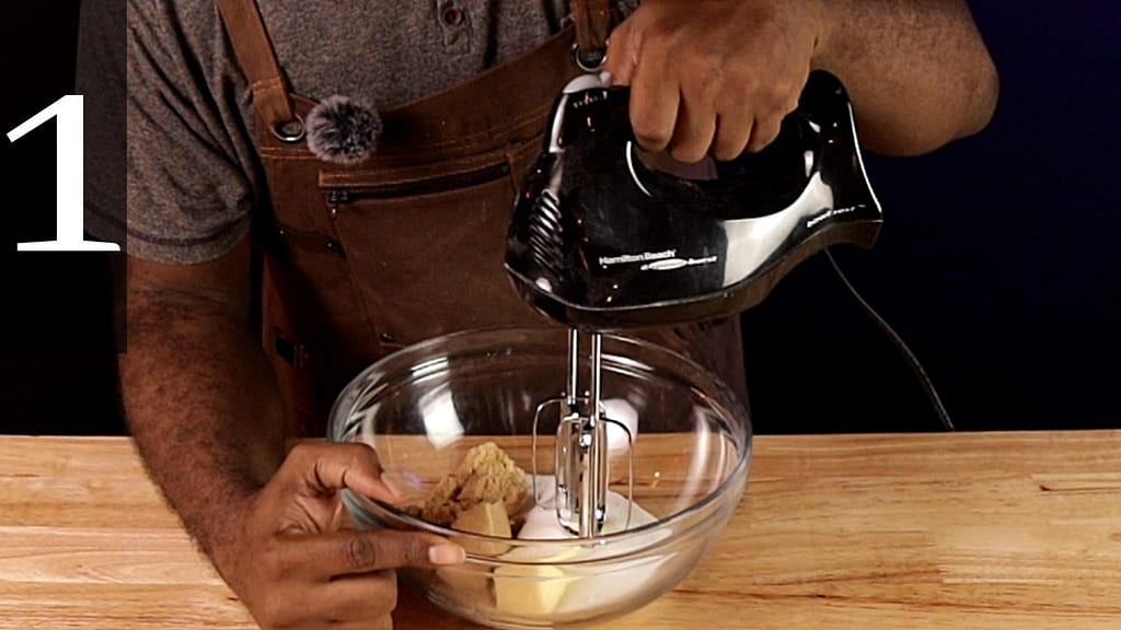 - To a large bowl, add the butter, sugar, and brown sugar. Using a hand mixer or stand mixer, beat until combined.