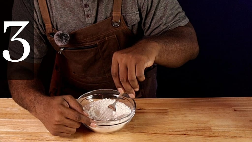 3. In a medium sized bowl, add the flour, baking powder, baking soda, and salt. Whisk until well combined.