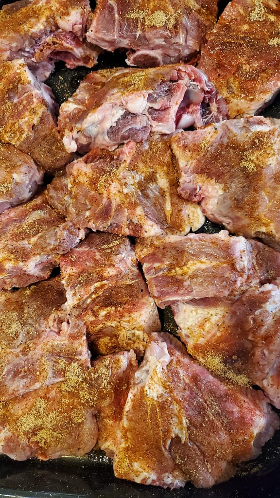 5. Sprinkle neckbones evenly with the prepared seasoning.