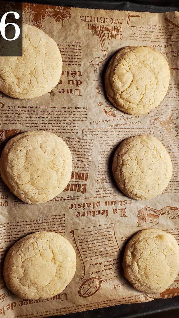 I really wanted to give the cafe/bookstore feel to these cookies so decided that they would looks better rolled in sparkling sugar. The bigger sugar crystals just elevate these sugar cookies to a signature coffee shop cookie. If you don’t have sparkling sugar, you can use plain granulated sugar. Though it may disappear during baking.